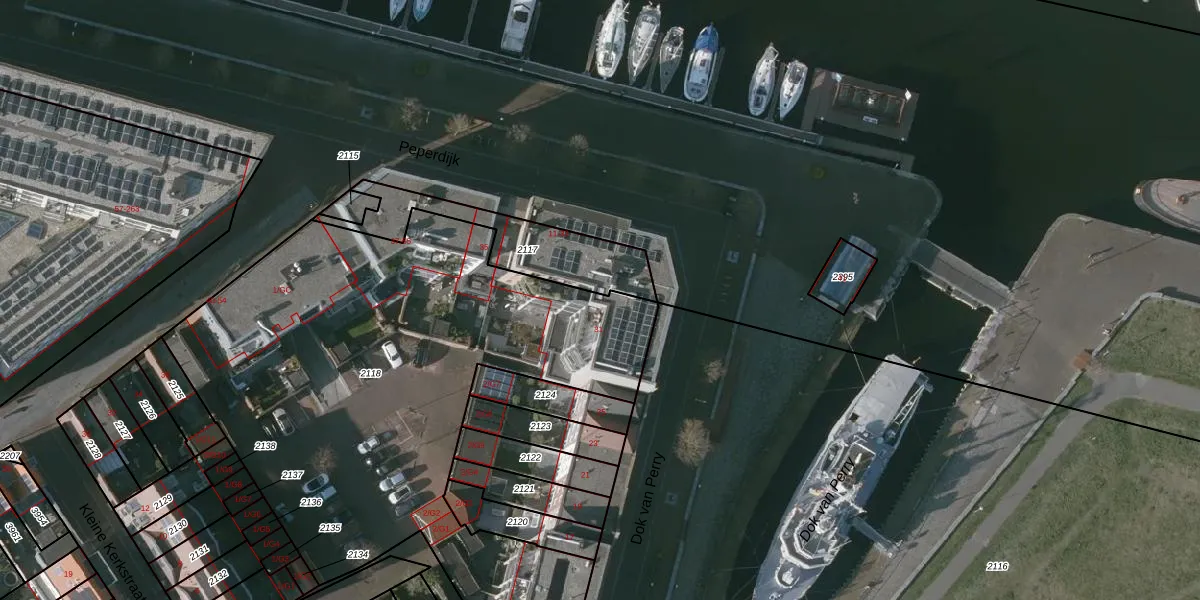 Het adres is gelegen op perceel 2118 in de sectie C en de kadastrale gemeente Vlissingen. De kadastrale aanduiding is aldus VSG00-C-2118. De gemiddelde perceelgrootte in Vlissingen is 1,7 ha. Dit perceel is kleiner: de perceeloppervlakte bedraagt 3030 m². De grootste perceeloppervlakte in de kadastrale gemeente is 75,72 km². De kleinste oppervlakte bedraagt 0 m². Op het perceel liggen in totaal 25 adressen. In de Basisregistratie Kadaster (BRK) werden de grenzen van het perceel geregistreerd op 31-01-2011.