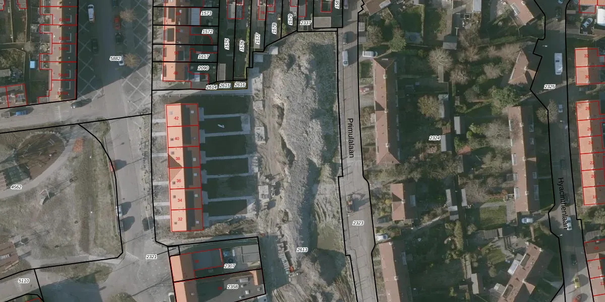 Het perceel waarop Primulalaan 19 staat heeft een oppervlakte van 6686 m². Dit is een zeer groot perceel. De perceeloppervlakte wordt geregistreerd door het Kadaster. Gedetailleerde informatie over de maten van dit perceel kunt u vinden in het rapport Kadastrale kaart met maatvoering van Primulalaan 19.