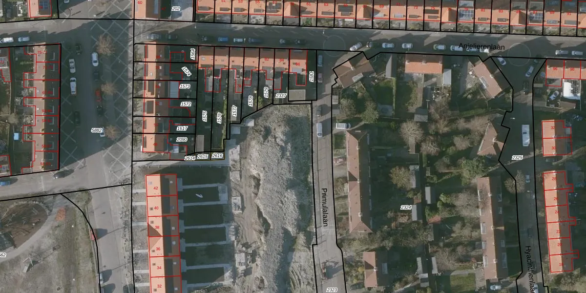 Het perceel waarop Primulalaan 27 staat heeft een oppervlakte van 6686 m². Dit is een zeer groot perceel. De perceeloppervlakte wordt geregistreerd door het Kadaster. Gedetailleerde informatie over de maten van dit perceel kunt u vinden in het rapport Kadastrale kaart met maatvoering van Primulalaan 27.