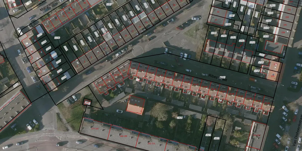 Ribesstraat 10 is gelegen op kadastraal perceel VSG00B2304. Deze kadastrale aanduiding is uniek en wordt gebruikt door het Kadaster om eigendomsrechten en andere zakelijke rechten vast te leggen. Het perceel maakt onderdeel uit van de kadastrale gemeente Vlissingen.