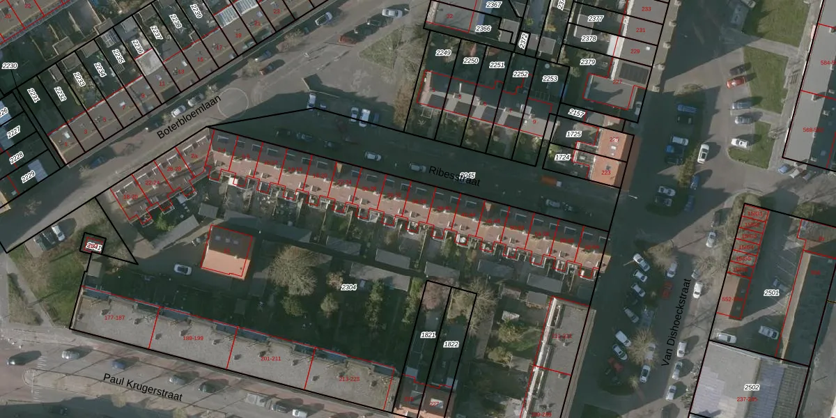Het perceel waarop Ribesstraat 36 staat heeft een oppervlakte van 5850 m². Dit is een zeer groot perceel. De perceeloppervlakte wordt geregistreerd door het Kadaster. Gedetailleerde informatie over de maten van dit perceel kunt u vinden in het rapport Kadastrale kaart met maatvoering van Ribesstraat 36.