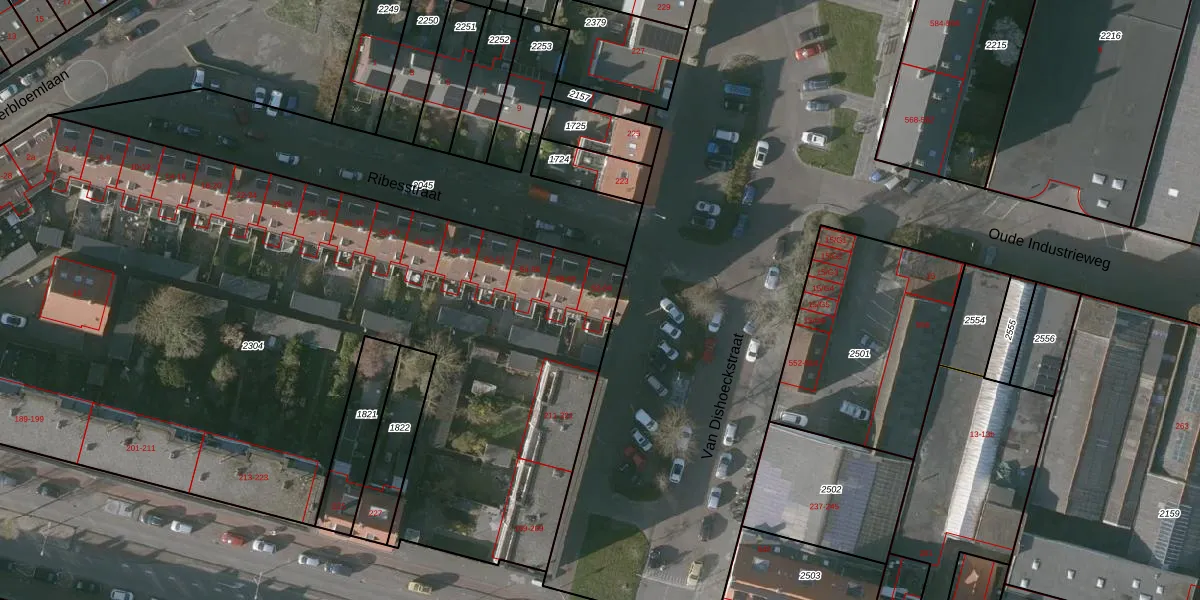 Het perceel waarop Ribesstraat 62 staat heeft een oppervlakte van 5850 m². Dit is een zeer groot perceel. De perceeloppervlakte wordt geregistreerd door het Kadaster. Gedetailleerde informatie over de maten van dit perceel kunt u vinden in het rapport Kadastrale kaart met maatvoering van Ribesstraat 62.
