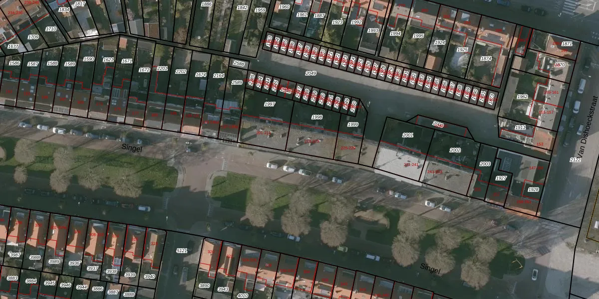 Het perceel waarop Singel 213 staat heeft een oppervlakte van 267 m². Dit is een middelgroot perceel. De perceeloppervlakte wordt geregistreerd door het Kadaster. Gedetailleerde informatie over de maten van dit perceel kunt u vinden in het rapport Kadastrale kaart met maatvoering van Singel 213.