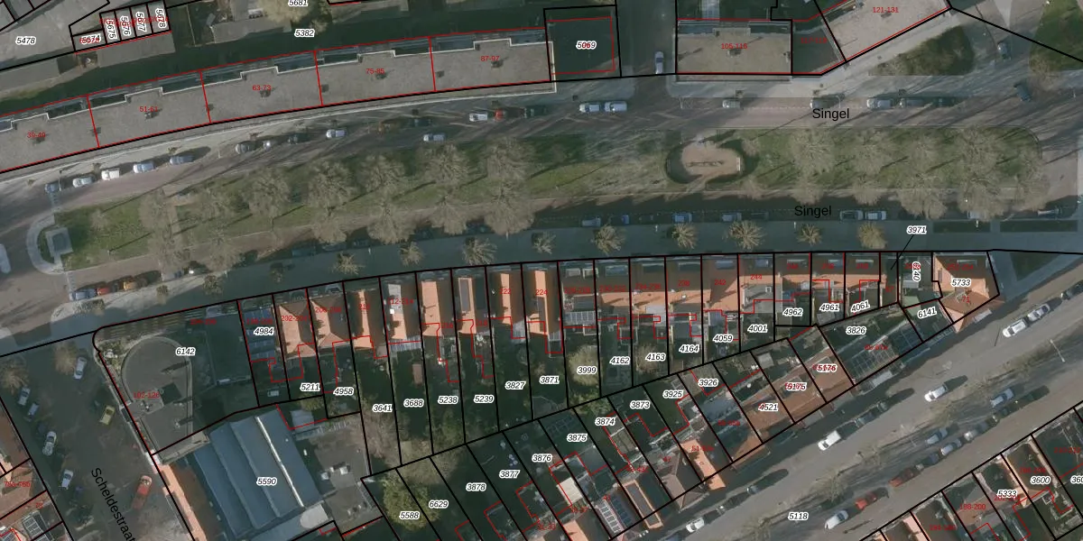 Het perceel waarop Singel 224 staat heeft een oppervlakte van 186 m². Dit is een middelgroot perceel. De perceeloppervlakte wordt geregistreerd door het Kadaster. Gedetailleerde informatie over de maten van dit perceel kunt u vinden in het rapport Kadastrale kaart met maatvoering van Singel 224.