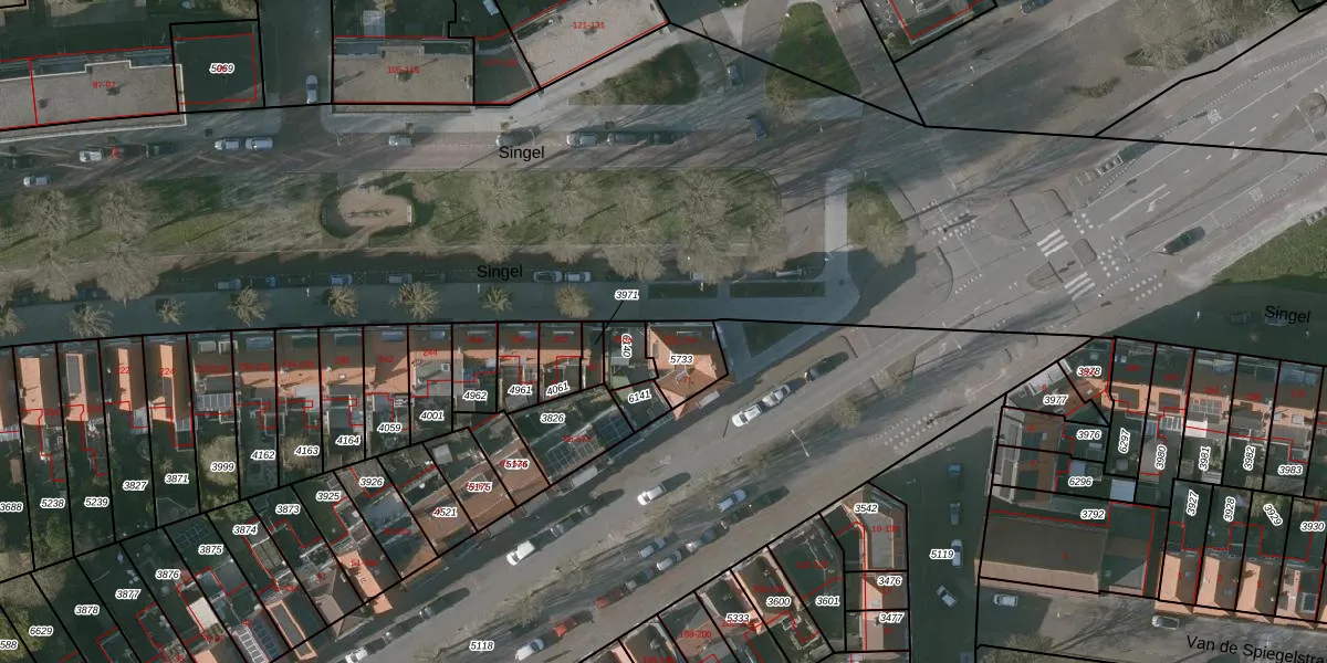 Het perceel waarop Singel 252 staat heeft een oppervlakte van 107 m². Dit is een middelgroot perceel. De perceeloppervlakte wordt geregistreerd door het Kadaster. Gedetailleerde informatie over de maten van dit perceel kunt u vinden in het rapport Kadastrale kaart met maatvoering van Singel 252.