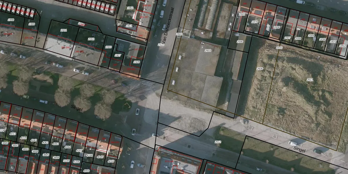 Singel 297 is gelegen op kadastraal perceel VSG00B2603. Deze kadastrale aanduiding is uniek en wordt gebruikt door het Kadaster om eigendomsrechten en andere zakelijke rechten vast te leggen. Het perceel maakt onderdeel uit van de kadastrale gemeente Vlissingen.