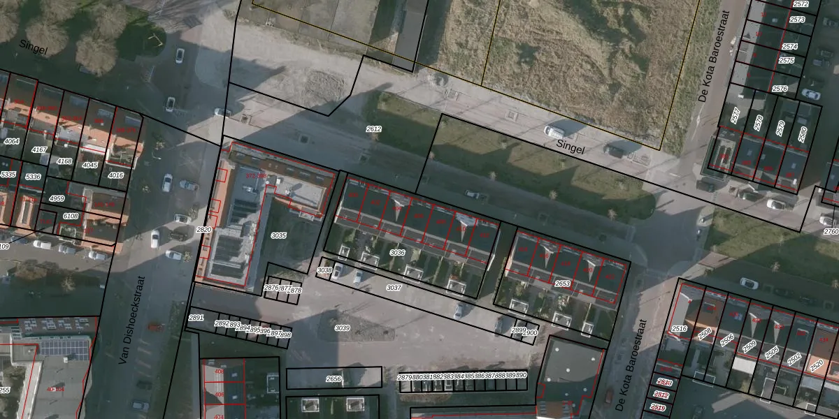 Het perceel waarop Singel 406 staat heeft een oppervlakte van 746 m². Dit is een groot perceel. De perceeloppervlakte wordt geregistreerd door het Kadaster. Gedetailleerde informatie over de maten van dit perceel kunt u vinden in het rapport Kadastrale kaart met maatvoering van Singel 406.