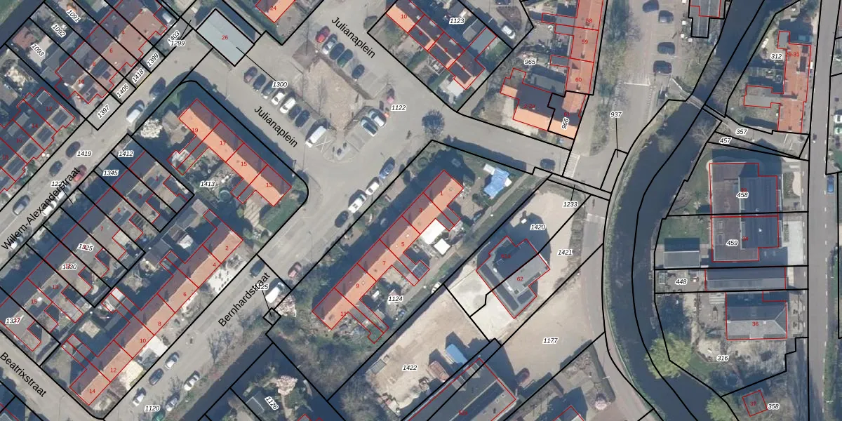 Het perceel waarop Julianaplein 3 staat heeft een oppervlakte van 1680 m². Dit is een zeer groot perceel. De perceeloppervlakte wordt geregistreerd door het Kadaster. Gedetailleerde informatie over de maten van dit perceel kunt u vinden in het rapport Kadastrale kaart met maatvoering van Julianaplein 3.