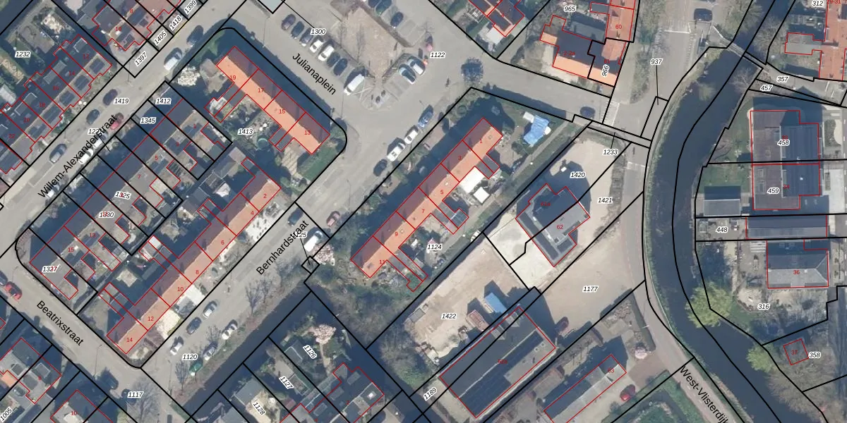 Het adres is gelegen op perceel 1124 in de sectie A en de kadastrale gemeente Vlist. De kadastrale aanduiding is aldus VLI00-A-1124. Het perceel is 1680 m² groot. Dat is kleiner dan de gemiddelde perceeloppervlakte in Vlist, dat op 1,0 ha ligt. Het kleinste perceel in de kadastrale gemeente is 1 m² groot. De grootste perceeloppervlakte is 18,9 ha. Op het perceel liggen in totaal 6 adressen. De huidige grenzen van het perceel zijn digitaal in de Basisregistratie Kadaster (BRK) geregistreerd op 30-10-2025.