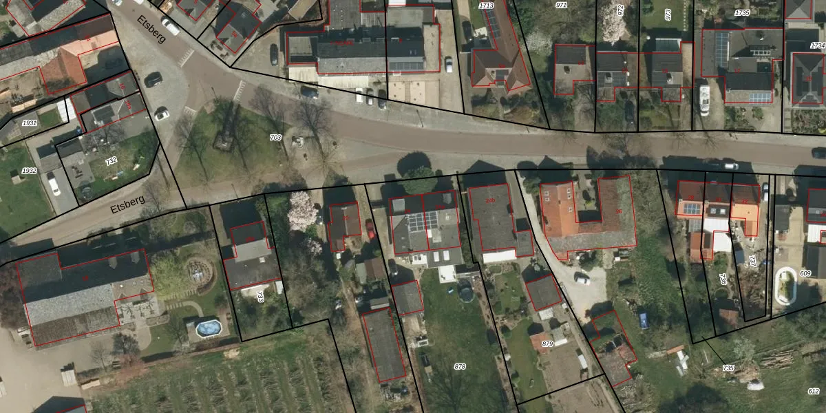 Het perceel waarop Etsberg 24 staat heeft een oppervlakte van 1710 m². Dit is een zeer groot perceel. De perceeloppervlakte wordt geregistreerd door het Kadaster. Gedetailleerde informatie over de maten van dit perceel kunt u vinden in het rapport Kadastrale kaart met maatvoering van Etsberg 24.