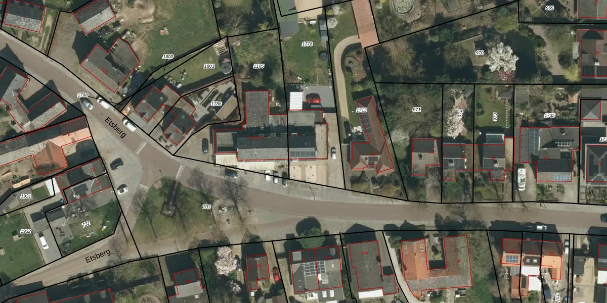 Het perceel waarop Etsberg 9 staat heeft een oppervlakte van 968 m². Dit is een groot perceel. De perceeloppervlakte wordt geregistreerd door het Kadaster. Gedetailleerde informatie over de maten van dit perceel kunt u vinden in het rapport Kadastrale kaart met maatvoering van Etsberg 9.