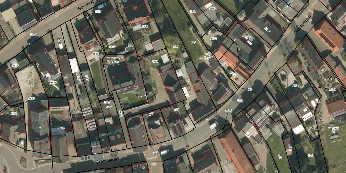 Grootestraat 13 is gelegen op kadastraal perceel VDP00F1619. Deze kadastrale aanduiding is uniek en wordt gebruikt door het Kadaster om eigendomsrechten en andere zakelijke rechten vast te leggen. Het perceel maakt onderdeel uit van de kadastrale gemeente Vlodrop.