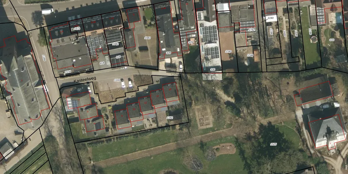 Kasteelweg 16 is gelegen op kadastraal perceel VDP00F1192. Deze kadastrale aanduiding is uniek en wordt gebruikt door het Kadaster om eigendomsrechten en andere zakelijke rechten vast te leggen. Het perceel maakt onderdeel uit van de kadastrale gemeente Vlodrop.