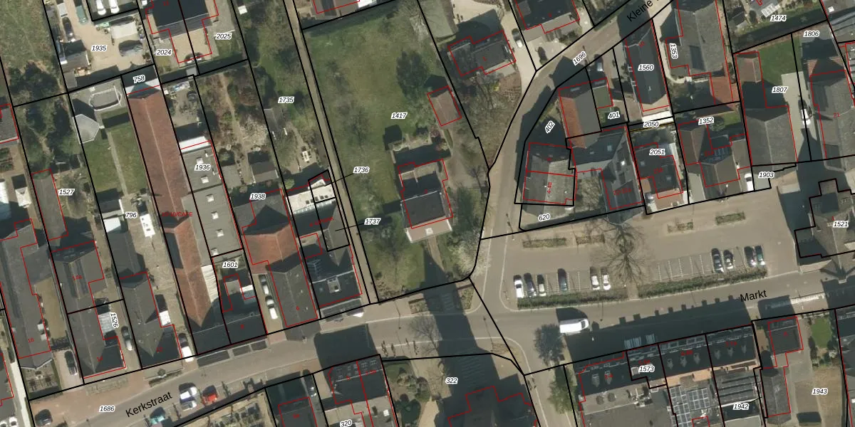 Het perceel waarop Kerkstraat 2 staat heeft een oppervlakte van 1980 m². Dit is een zeer groot perceel. De perceeloppervlakte wordt geregistreerd door het Kadaster. Gedetailleerde informatie over de maten van dit perceel kunt u vinden in het rapport Kadastrale kaart met maatvoering van Kerkstraat 2.