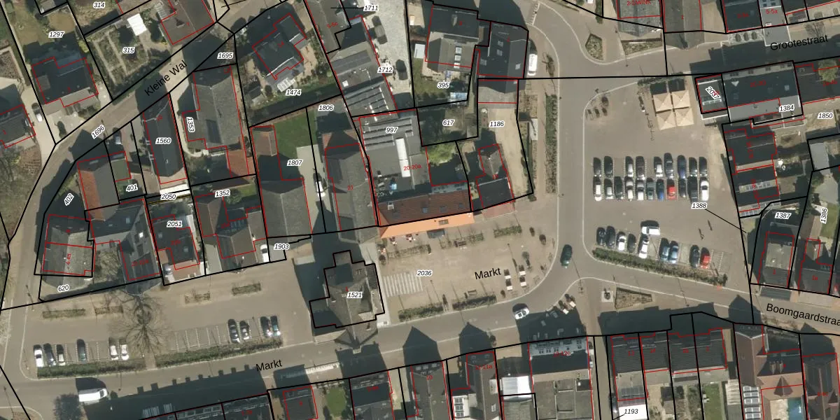 Het perceel waarop Markt 20-LOOD staat heeft een oppervlakte van 520 m². Dit is een groot perceel. De perceeloppervlakte wordt geregistreerd door het Kadaster. Gedetailleerde informatie over de maten van dit perceel kunt u vinden in het rapport Kadastrale kaart met maatvoering van Markt 20-LOOD.