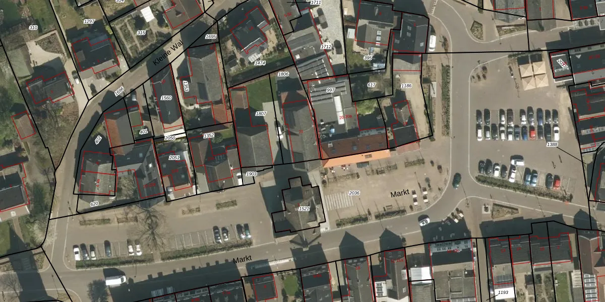 Het perceel waarop Markt 21 staat heeft een oppervlakte van 365 m². Dit is een groot perceel. De perceeloppervlakte wordt geregistreerd door het Kadaster. Gedetailleerde informatie over de maten van dit perceel kunt u vinden in het rapport Kadastrale kaart met maatvoering van Markt 21.