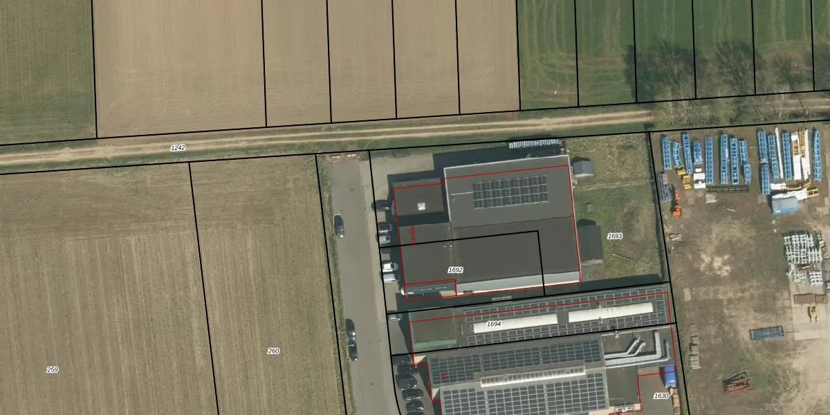 Het adres is gelegen op perceel 1693 in de sectie F en de kadastrale gemeente Vlodrop. De kadastrale aanduiding is aldus VDP00-F-1693. De gemiddelde perceelgrootte in Vlodrop is 7286,77 m². Dit perceel is kleiner: de perceeloppervlakte bedraagt 1975 m². De grootste perceeloppervlakte in de kadastrale gemeente is 1,25 km². De kleinste oppervlakte bedraagt 1 m². Op het perceel bevinden zich geen andere adressen. De laatste wijziging in het de Basisregistratie Kadaster (BRK) was op 20-10-2006.