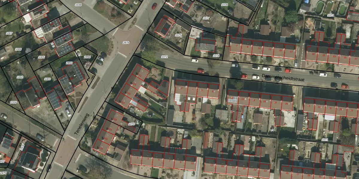Het perceel waarop Dammerscheidtstraat 2 staat heeft een oppervlakte van 1,2 ha. Dit is een zeer groot perceel. De perceeloppervlakte wordt geregistreerd door het Kadaster. Gedetailleerde informatie over de maten van dit perceel kunt u vinden in het rapport Kadastrale kaart met maatvoering van Dammerscheidtstraat 2.
