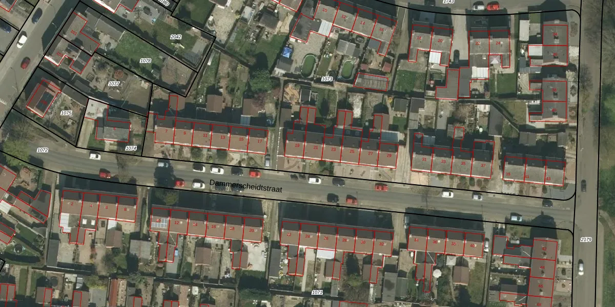 Dammerscheidtstraat 21 is gelegen op kadastraal perceel VRD00F1073. Deze kadastrale aanduiding is uniek en wordt gebruikt door het Kadaster om eigendomsrechten en andere zakelijke rechten vast te leggen. Het perceel maakt onderdeel uit van de kadastrale gemeente Voerendaal.