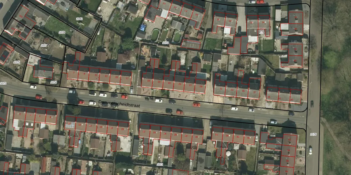 Dammerscheidtstraat 25 is gelegen op kadastraal perceel VRD00F1073. Deze kadastrale aanduiding is uniek en wordt gebruikt door het Kadaster om eigendomsrechten en andere zakelijke rechten vast te leggen. Het perceel maakt onderdeel uit van de kadastrale gemeente Voerendaal.
