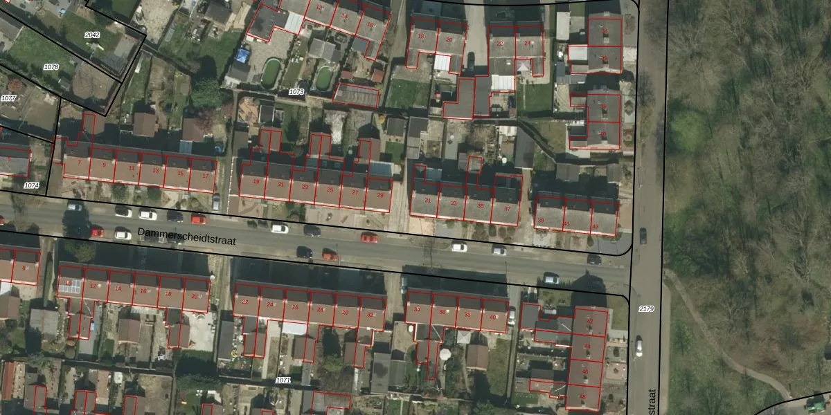 Dammerscheidtstraat 31 is gelegen op kadastraal perceel VRD00F1073. Deze kadastrale aanduiding is uniek en wordt gebruikt door het Kadaster om eigendomsrechten en andere zakelijke rechten vast te leggen. Het perceel maakt onderdeel uit van de kadastrale gemeente Voerendaal.