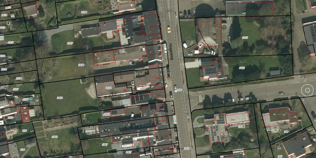 Hogeweg 24 is gelegen op kadastraal perceel VRD00F2432. Deze kadastrale aanduiding is uniek en wordt gebruikt door het Kadaster om eigendomsrechten en andere zakelijke rechten vast te leggen. Het perceel maakt onderdeel uit van de kadastrale gemeente Voerendaal.
