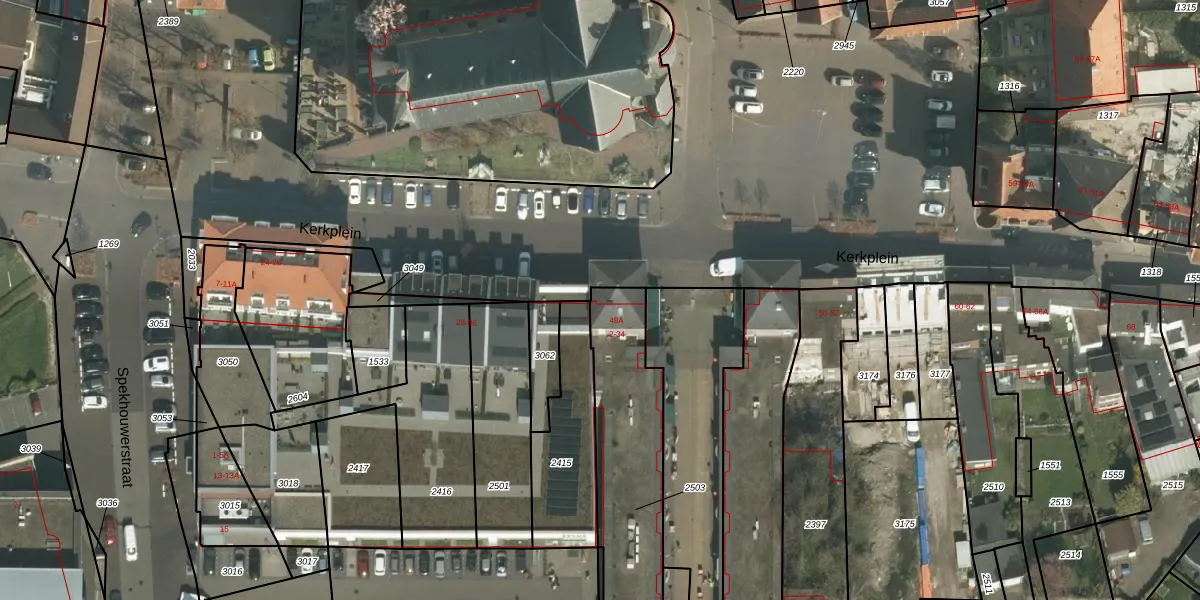 Het perceel waarop Kerkplein 48-A staat heeft een oppervlakte van 830 m². Dit is een groot perceel. De perceeloppervlakte wordt geregistreerd door het Kadaster. Gedetailleerde informatie over de maten van dit perceel kunt u vinden in het rapport Kadastrale kaart met maatvoering van Kerkplein 48-A.