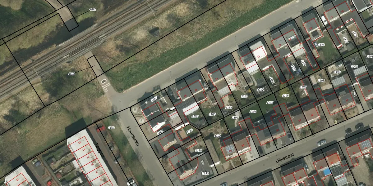 Parallelweg 26 is gelegen op kadastraal perceel VRD00F1186. Deze kadastrale aanduiding is uniek en wordt gebruikt door het Kadaster om eigendomsrechten en andere zakelijke rechten vast te leggen. Het perceel maakt onderdeel uit van de kadastrale gemeente Voerendaal.