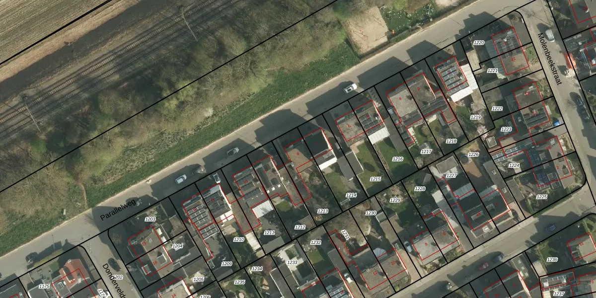 Parallelweg 8 is gelegen op kadastraal perceel VRD00F1213. Deze kadastrale aanduiding is uniek en wordt gebruikt door het Kadaster om eigendomsrechten en andere zakelijke rechten vast te leggen. Het perceel maakt onderdeel uit van de kadastrale gemeente Voerendaal.