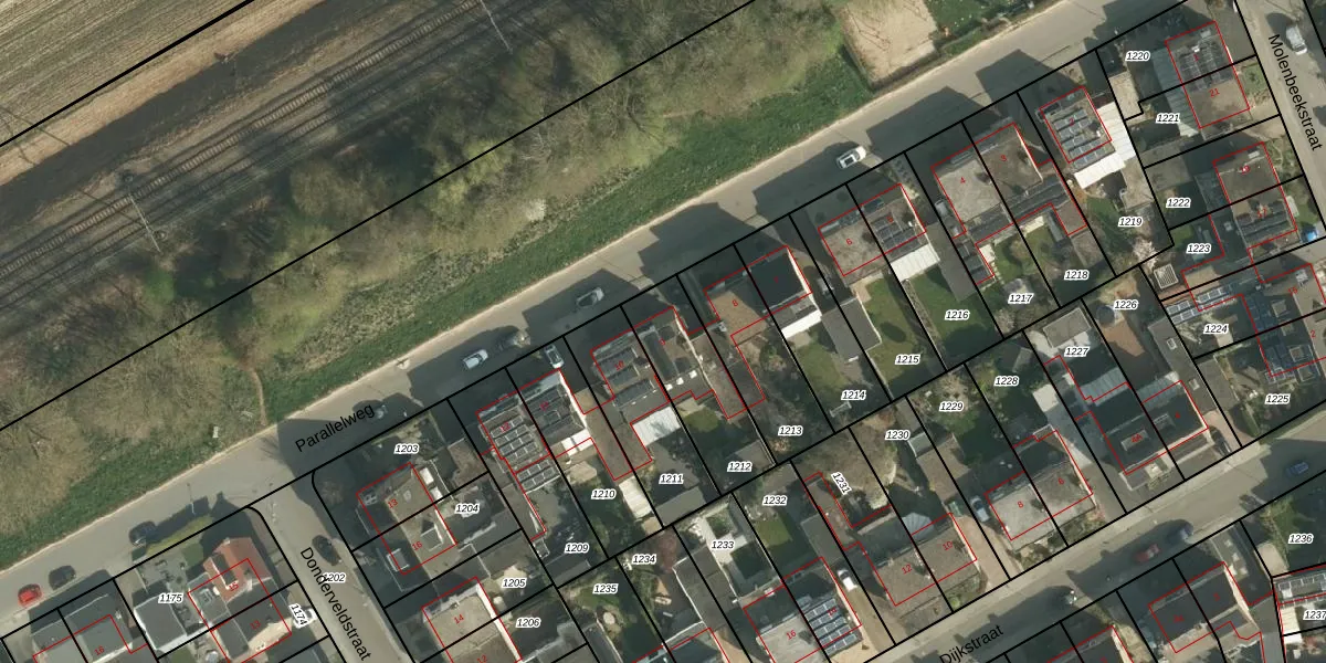 Parallelweg 9 is gelegen op kadastraal perceel VRD00F1212. Deze kadastrale aanduiding is uniek en wordt gebruikt door het Kadaster om eigendomsrechten en andere zakelijke rechten vast te leggen. Het perceel maakt onderdeel uit van de kadastrale gemeente Voerendaal.