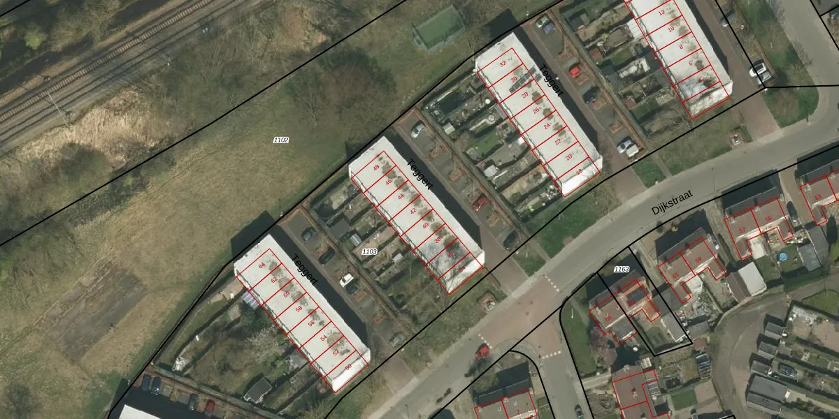 Teggert 42 is gelegen op kadastraal perceel VRD00F1103. Deze kadastrale aanduiding is uniek en wordt gebruikt door het Kadaster om eigendomsrechten en andere zakelijke rechten vast te leggen. Het perceel maakt onderdeel uit van de kadastrale gemeente Voerendaal.