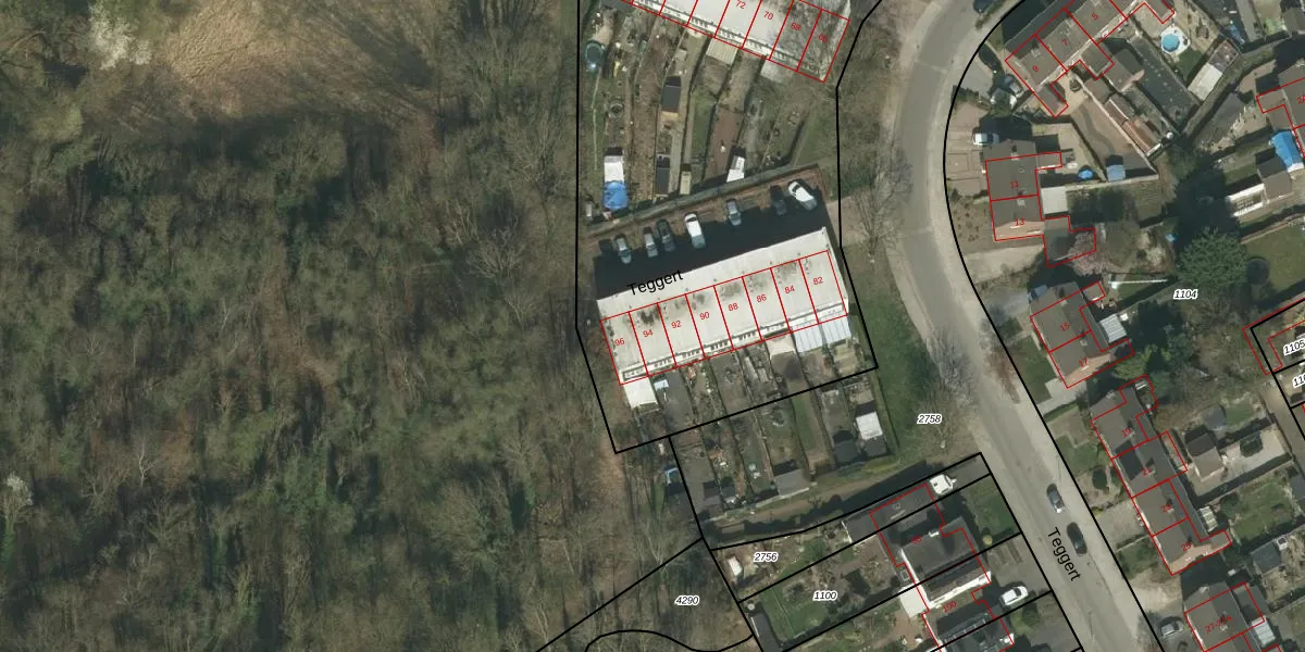 Het perceel waarop Teggert 94 staat heeft een oppervlakte van 9765 m². Dit is een zeer groot perceel. De perceeloppervlakte wordt geregistreerd door het Kadaster. Gedetailleerde informatie over de maten van dit perceel kunt u vinden in het rapport Kadastrale kaart met maatvoering van Teggert 94.