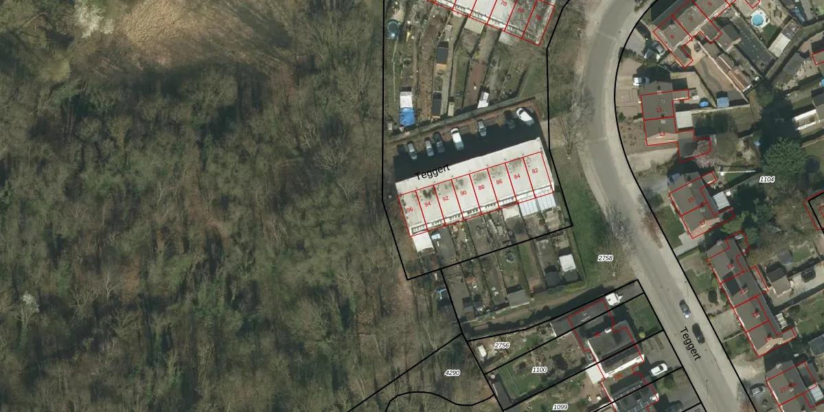 Teggert 96 is gelegen op kadastraal perceel VRD00F1103. Deze kadastrale aanduiding is uniek en wordt gebruikt door het Kadaster om eigendomsrechten en andere zakelijke rechten vast te leggen. Het perceel maakt onderdeel uit van de kadastrale gemeente Voerendaal.