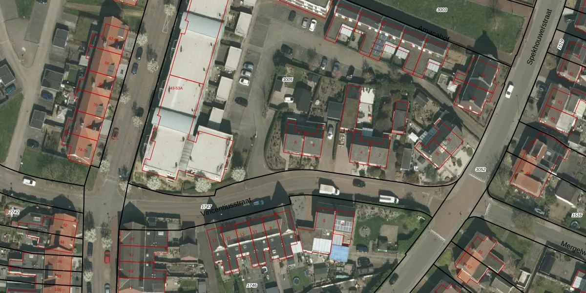 Vincentiusstraat 8 is gelegen op kadastraal perceel VRD00F3005. Deze kadastrale aanduiding is uniek en wordt gebruikt door het Kadaster om eigendomsrechten en andere zakelijke rechten vast te leggen. Het perceel maakt onderdeel uit van de kadastrale gemeente Voerendaal.