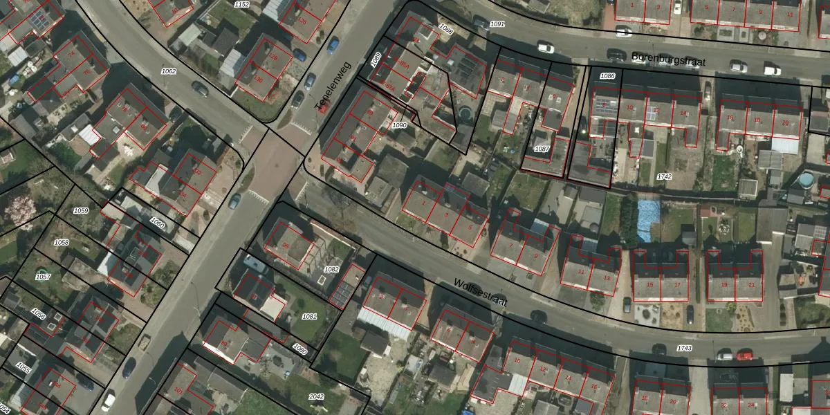 Het perceel waarop Wolfsestraat 1 staat heeft een oppervlakte van 5958 m². Dit is een zeer groot perceel. De perceeloppervlakte wordt geregistreerd door het Kadaster. Gedetailleerde informatie over de maten van dit perceel kunt u vinden in het rapport Kadastrale kaart met maatvoering van Wolfsestraat 1.