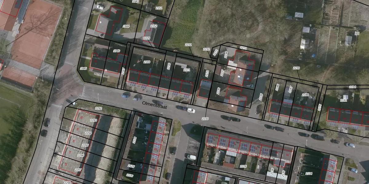 Het perceel waarop Olmenstraat 11 staat heeft een oppervlakte van 321 m². Dit is een groot perceel. De perceeloppervlakte wordt geregistreerd door het Kadaster. Gedetailleerde informatie over de maten van dit perceel kunt u vinden in het rapport Kadastrale kaart met maatvoering van Olmenstraat 11.