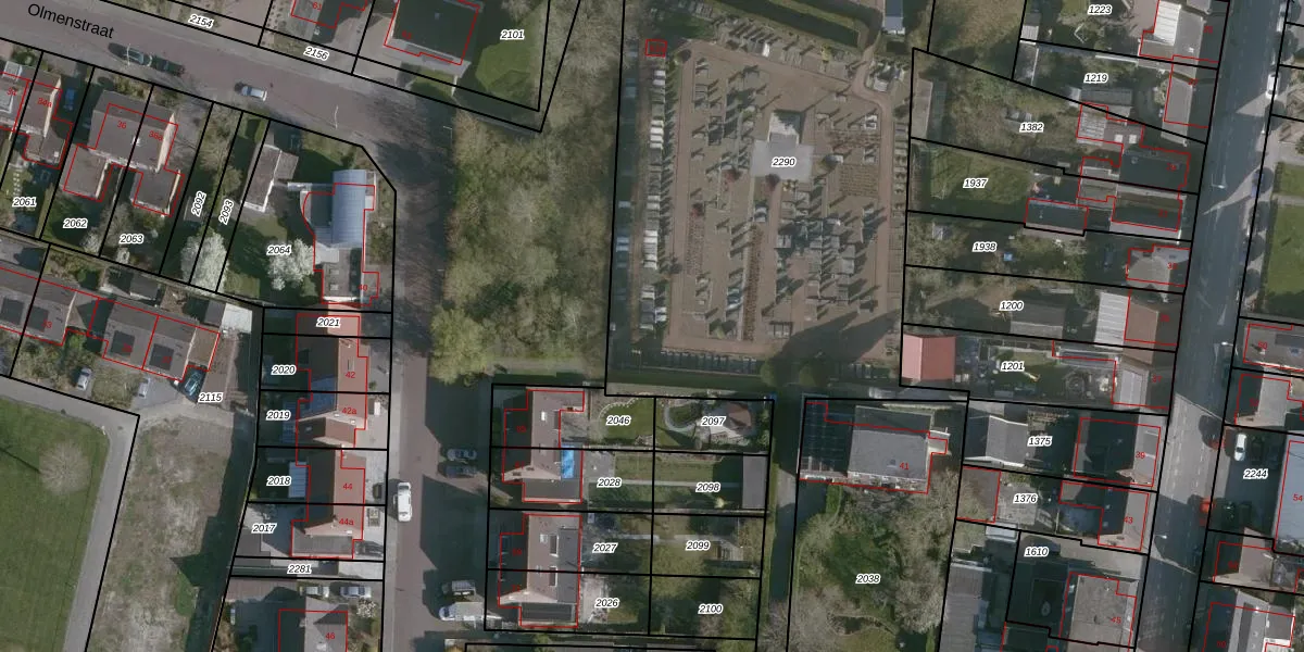 Het perceel waarop Olmenstraat 63-a staat heeft een oppervlakte van 4450 m². Dit is een zeer groot perceel. De perceeloppervlakte wordt geregistreerd door het Kadaster. Gedetailleerde informatie over de maten van dit perceel kunt u vinden in het rapport Kadastrale kaart met maatvoering van Olmenstraat 63-a.