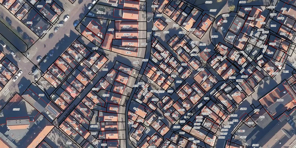 Het perceel waarop Doolhof 38 staat heeft een oppervlakte van 33 m². Dit is een klein perceel. De perceeloppervlakte wordt geregistreerd door het Kadaster. Gedetailleerde informatie over de maten van dit perceel kunt u vinden in het rapport Kadastrale kaart met maatvoering van Doolhof 38.