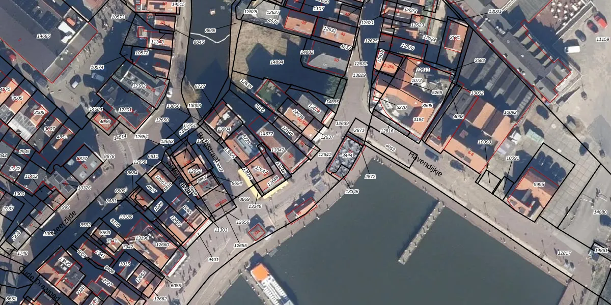Het perceel waarop Haven 58 staat heeft een oppervlakte van 30 m². Dit is een klein perceel. De perceeloppervlakte wordt geregistreerd door het Kadaster. Gedetailleerde informatie over de maten van dit perceel kunt u vinden in het rapport Kadastrale kaart met maatvoering van Haven 58.