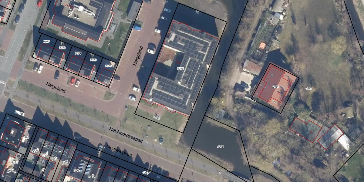 Het perceel waarop Helgoland 12 staat heeft een oppervlakte van 1878 m². Dit is een zeer groot perceel. De perceeloppervlakte wordt geregistreerd door het Kadaster. Gedetailleerde informatie over de maten van dit perceel kunt u vinden in het rapport Kadastrale kaart met maatvoering van Helgoland 12.