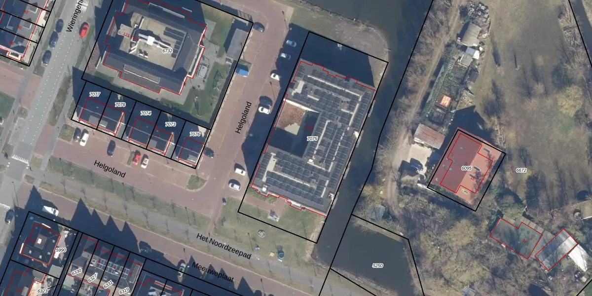 Het perceel waarop Helgoland 8 staat heeft een oppervlakte van 1878 m². Dit is een zeer groot perceel. De perceeloppervlakte wordt geregistreerd door het Kadaster. Gedetailleerde informatie over de maten van dit perceel kunt u vinden in het rapport Kadastrale kaart met maatvoering van Helgoland 8.