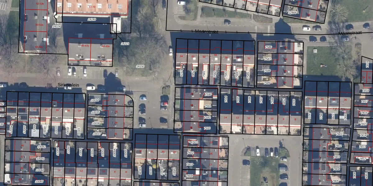 Het perceel waarop Siriusplein 25 staat heeft een oppervlakte van 140 m². Dit is een middelgroot perceel. De perceeloppervlakte wordt geregistreerd door het Kadaster. Gedetailleerde informatie over de maten van dit perceel kunt u vinden in het rapport Kadastrale kaart met maatvoering van Siriusplein 25.