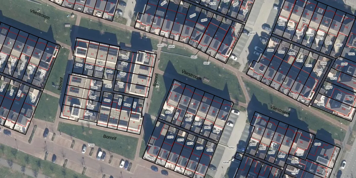 Het perceel waarop Vliestroom 28 staat heeft een oppervlakte van 176 m². Dit is een middelgroot perceel. De perceeloppervlakte wordt geregistreerd door het Kadaster. Gedetailleerde informatie over de maten van dit perceel kunt u vinden in het rapport Kadastrale kaart met maatvoering van Vliestroom 28.
