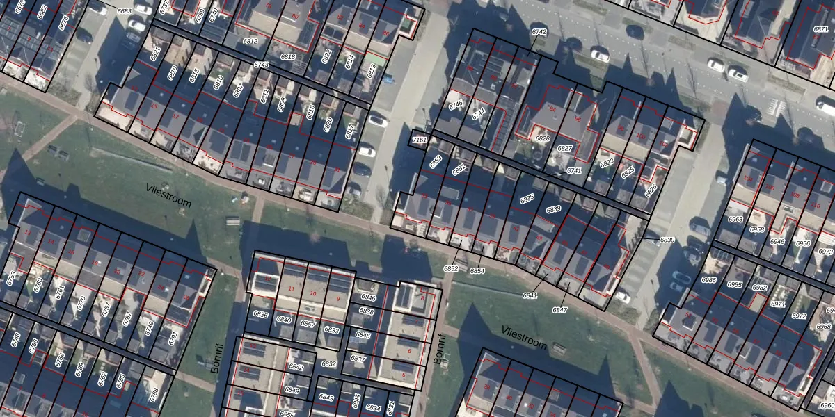 Het perceel waarop Vliestroom 33 staat heeft een oppervlakte van 170 m². Dit is een middelgroot perceel. De perceeloppervlakte wordt geregistreerd door het Kadaster. Gedetailleerde informatie over de maten van dit perceel kunt u vinden in het rapport Kadastrale kaart met maatvoering van Vliestroom 33.