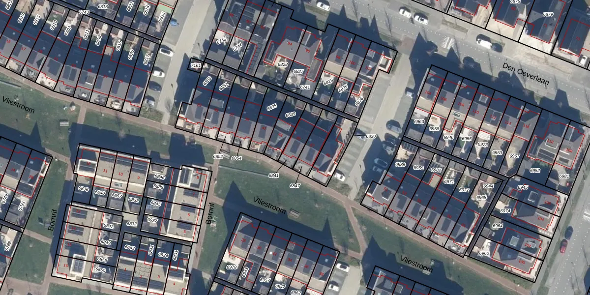 Gebruik de zoekbalk of klik op een perceel voor informatie over de adressen binnen dit perceel.
