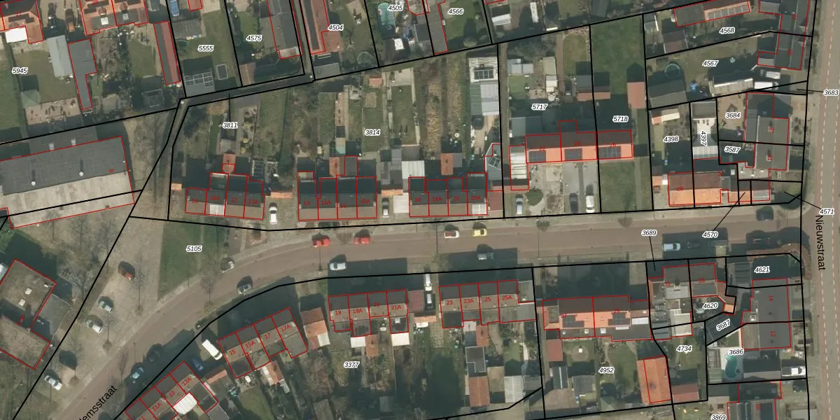 Het perceel waarop Aert Willemsstraat 18-A staat heeft een oppervlakte van 2755 m². Dit is een zeer groot perceel. De perceeloppervlakte wordt geregistreerd door het Kadaster. Gedetailleerde informatie over de maten van dit perceel kunt u vinden in het rapport Kadastrale kaart met maatvoering van Aert Willemsstraat 18-A.
