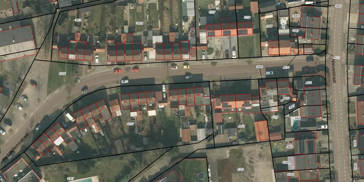 Het perceel waarop Aert Willemsstraat 23 staat heeft een oppervlakte van 3205 m². Dit is een zeer groot perceel. De perceeloppervlakte wordt geregistreerd door het Kadaster. Gedetailleerde informatie over de maten van dit perceel kunt u vinden in het rapport Kadastrale kaart met maatvoering van Aert Willemsstraat 23.