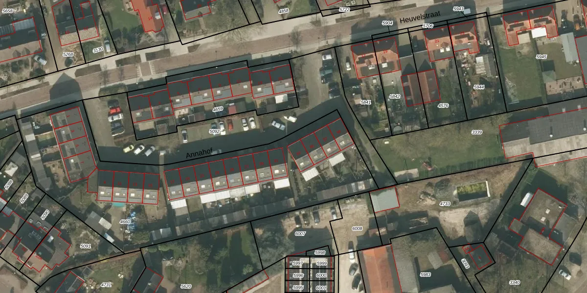 Het perceel waarop Annahof 33 staat heeft een oppervlakte van 3193 m². Dit is een zeer groot perceel. De perceeloppervlakte wordt geregistreerd door het Kadaster. Gedetailleerde informatie over de maten van dit perceel kunt u vinden in het rapport Kadastrale kaart met maatvoering van Annahof 33.