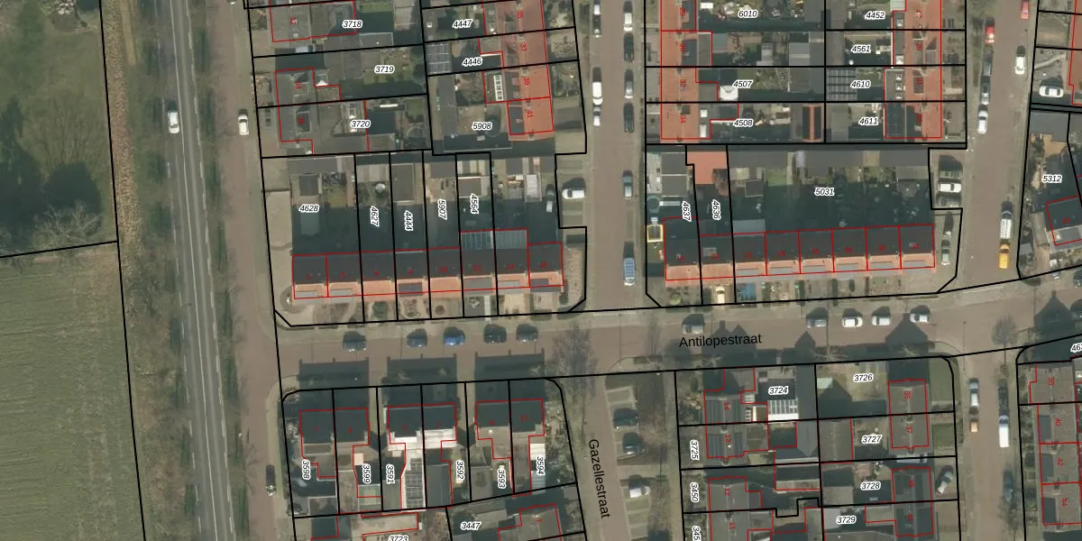 Antilopestraat 16 is gelegen op kadastraal perceel UDN00F5908. Deze kadastrale aanduiding is uniek en wordt gebruikt door het Kadaster om eigendomsrechten en andere zakelijke rechten vast te leggen. Het perceel maakt onderdeel uit van de kadastrale gemeente Uden.