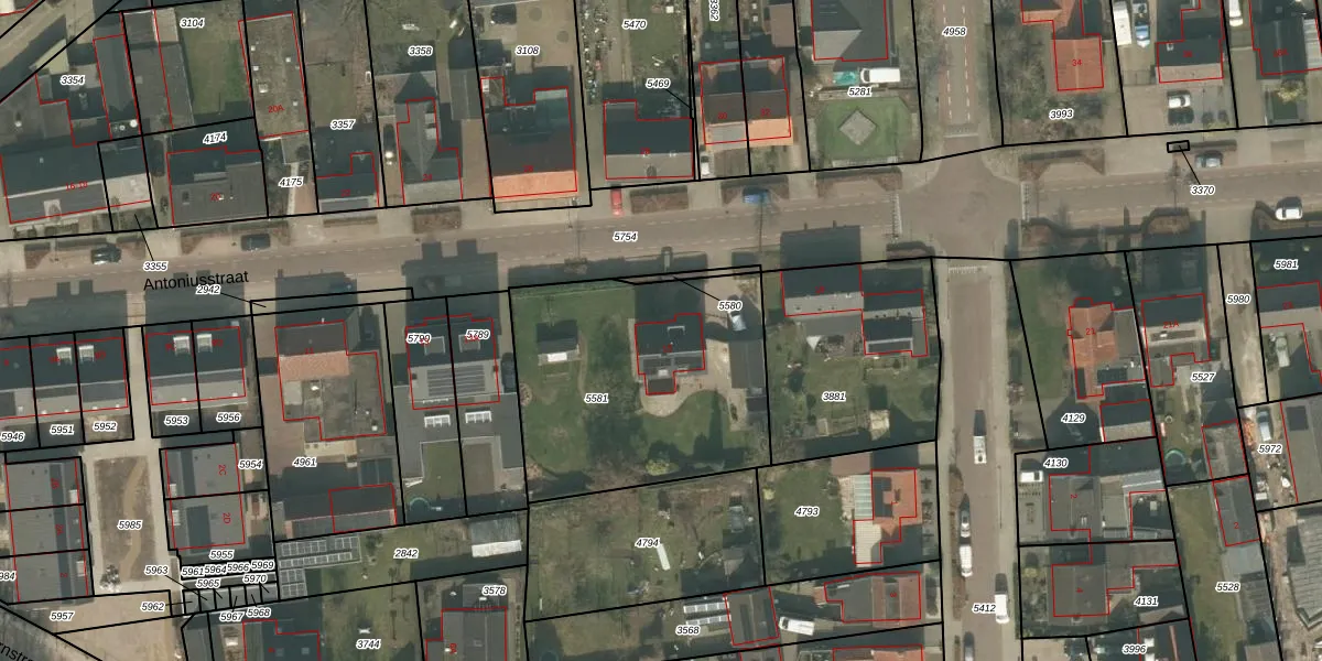 Antoniusstraat 15 is gelegen op kadastraal perceel UDN00F5581. Deze kadastrale aanduiding is uniek en wordt gebruikt door het Kadaster om eigendomsrechten en andere zakelijke rechten vast te leggen. Het perceel maakt onderdeel uit van de kadastrale gemeente Uden.